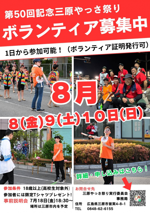 「やっさボランティア」とは、市民総参加を目的の1つとして毎年度開催している三原やっさ祭りに関わっていただきたいと2024年度から計画し、今回で二度目の実施となります。