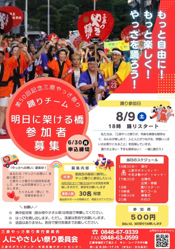 三原やっさ祭り実行委員会 人にやさしい祭り委員会 事務局(0848-67-9339)